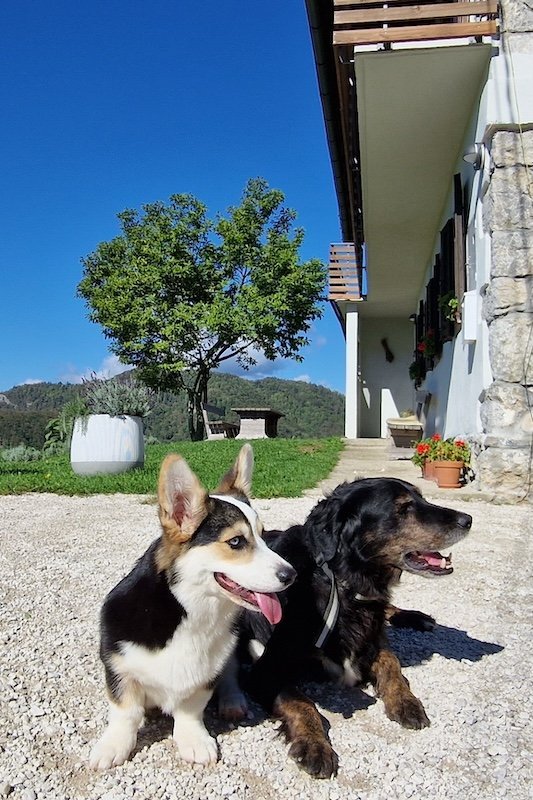 Apartments Vrhouc are located in our 100-year-old family stone house, perched at the very top of a hill and surrounded by fields and forest. The village of Volčanski Ruti is one of the most tranquil and peaceful places you can imagine, yet it is only a five-minute drive to the Soča Valley.